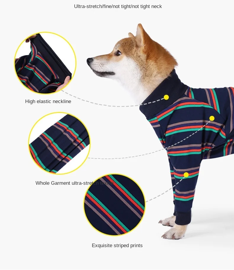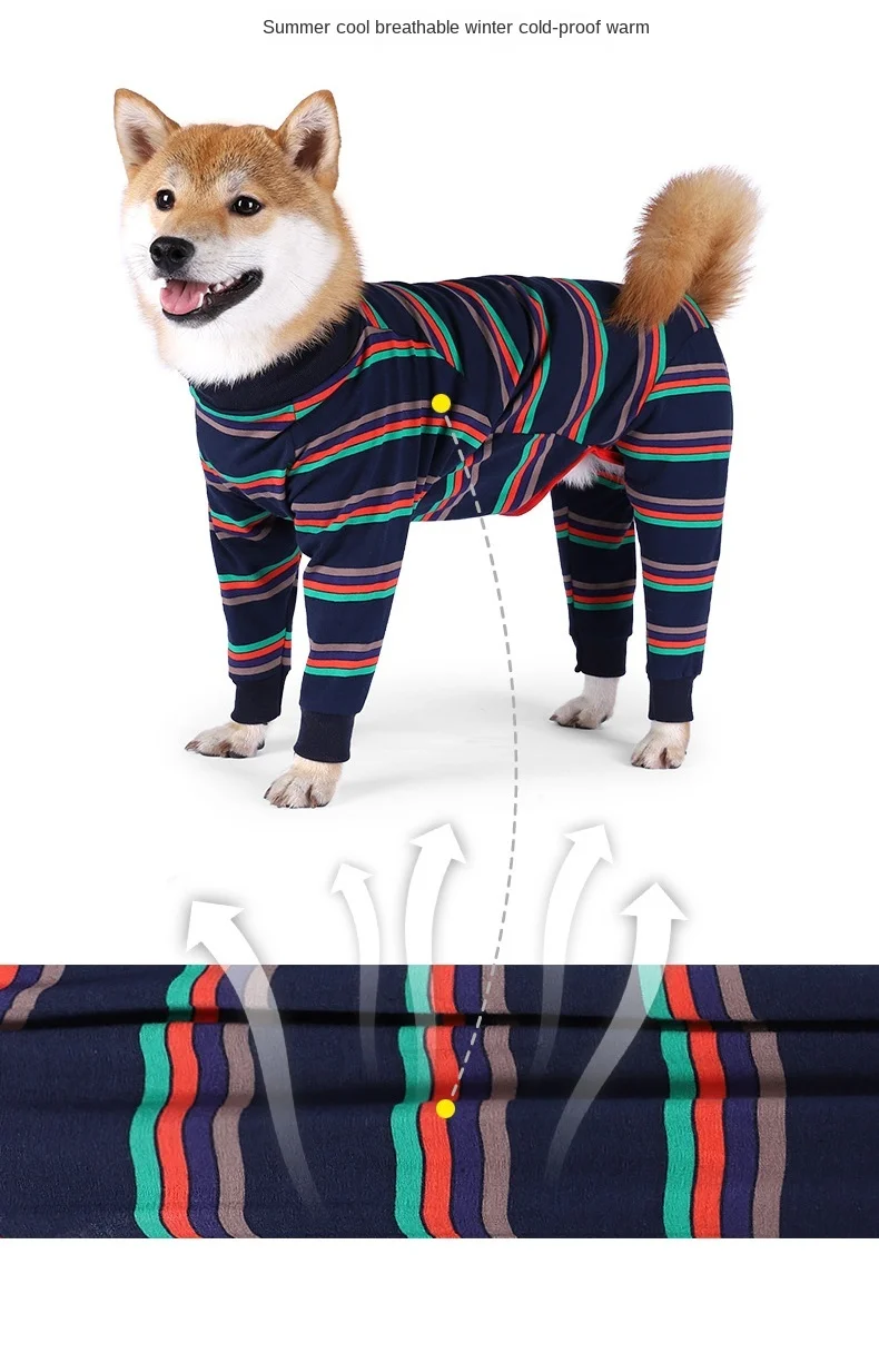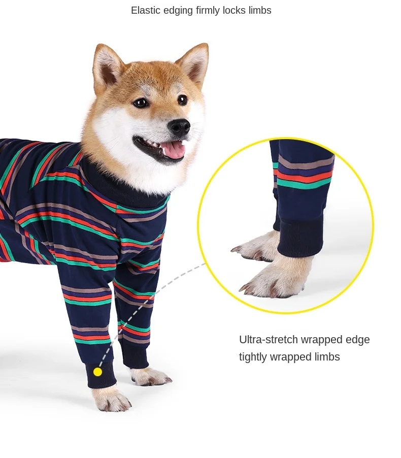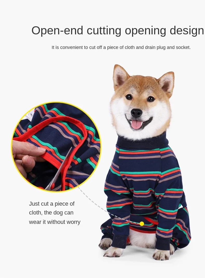 2. Four-legged dog clothes, multi-purpose, can be used as pajamas to keep warm in spring, autumn, and winter; can be used as postoperative clothing, weaning clothing; also can prevent hair loss and block wounds