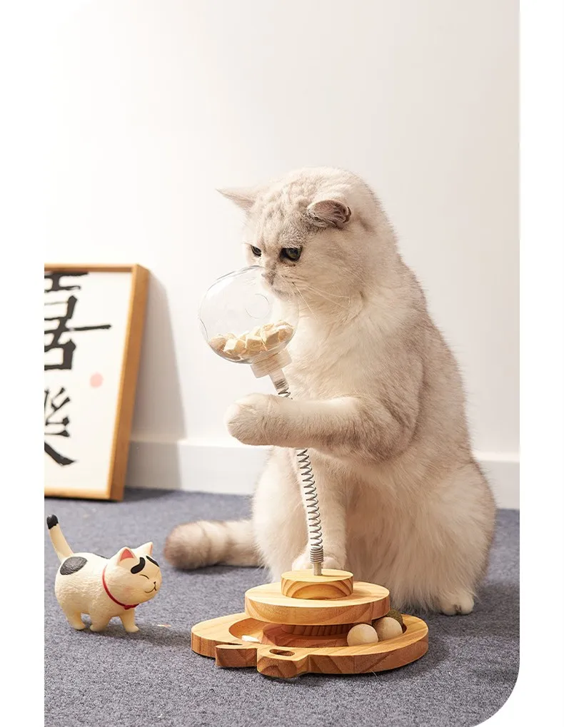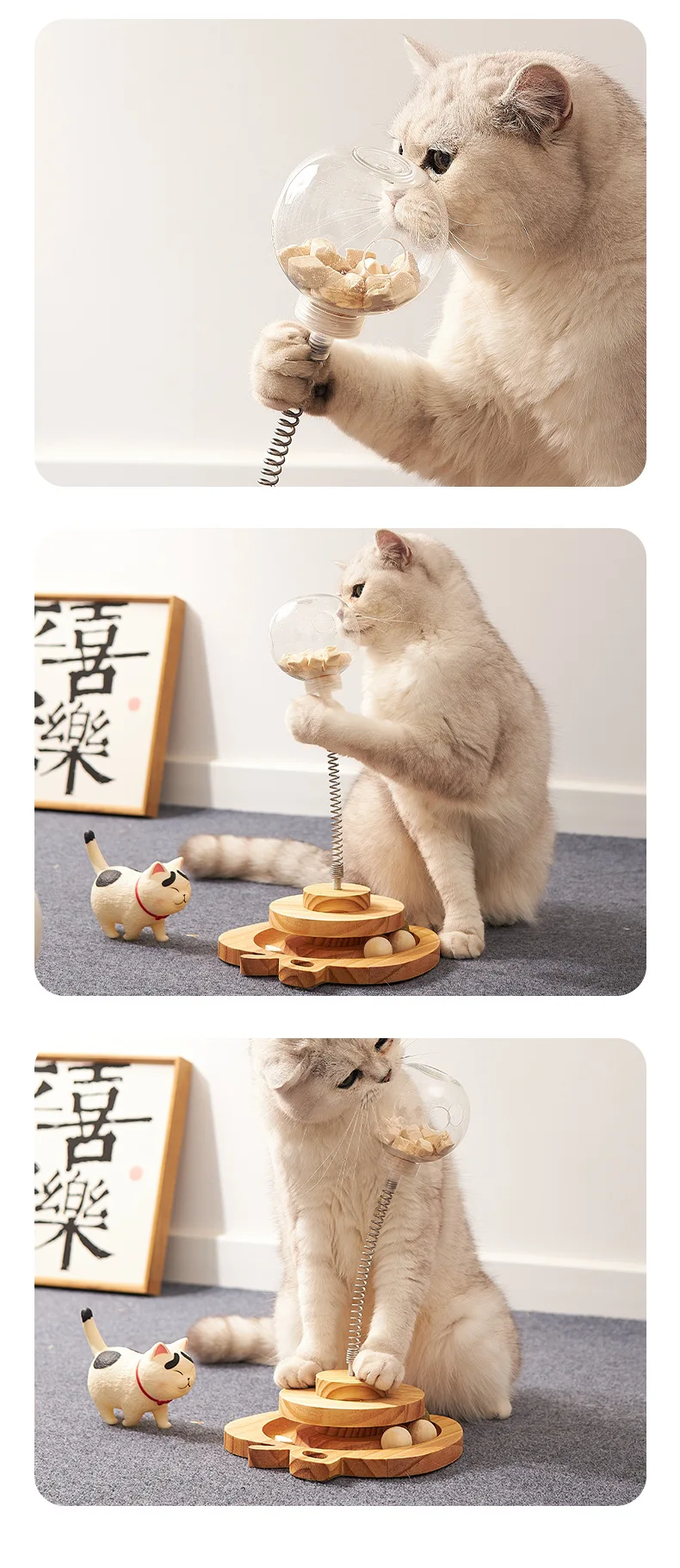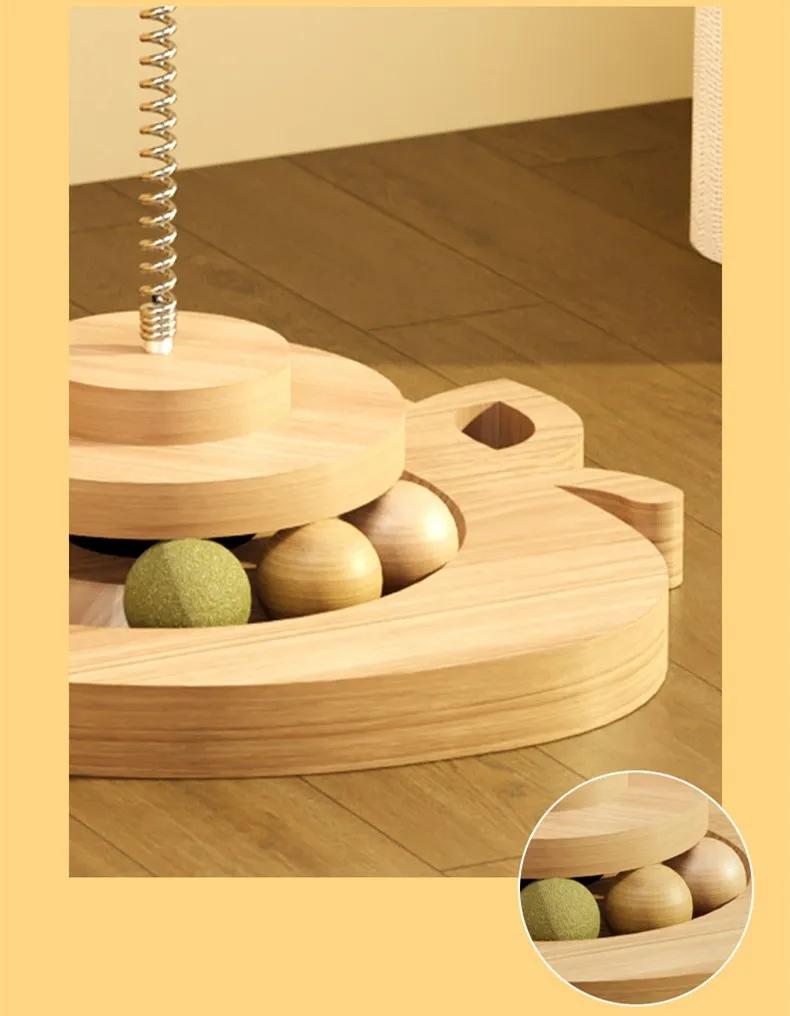 Pet Sneck Ball Toy Non-slip Wood Self-stimulation Cat Turntable with Cat Balls Catnip Ball Pet Supplies Cat Toy Toys Cats Items Products